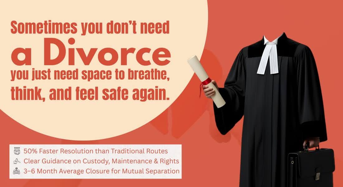 Judicial Separation is a legal remedy that allows couples to live separately without dissolving the marriage. It gives you space, clarity, and emotional distance without the finality of divorce.